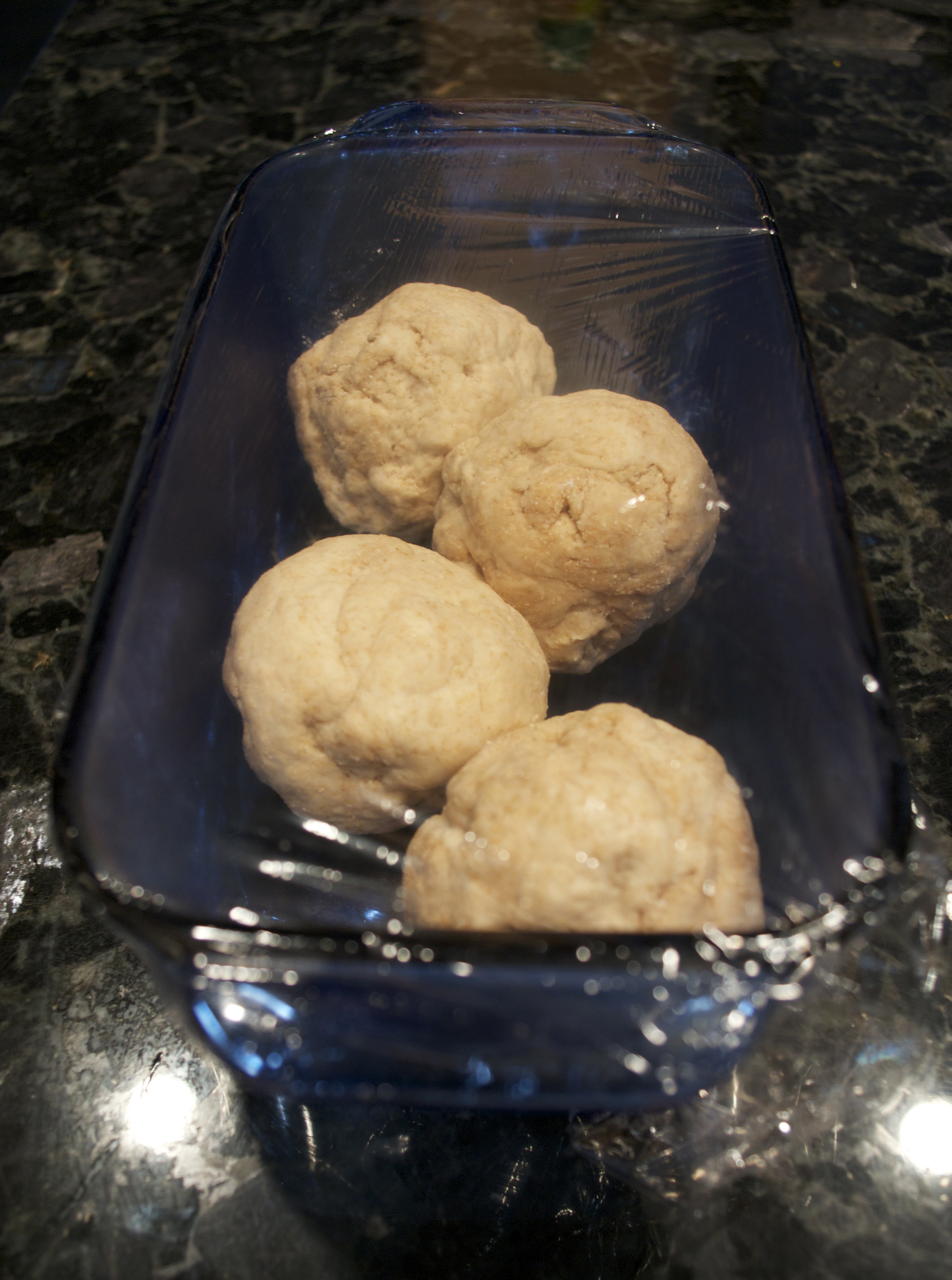 Combine warm water & yeast. Add sugar & honey. Let sit for about 5 minutes until the yeast are activated and the water begins to look foamy. Add the salt & sumac. Add the flour one cup at a time. If using a dough hook, keep on low speed. Otherwise, stir with wooden spoon to combine. My dough was a little bit tough. Make sure not to over mix. The dough should pull away from the sides of the bowl and form a smooth ball. Separate into 4 evenly sized balls, cover, and let rise in a warm spot for about an hour. I always microwave something (like water for tea) and then stick my dough in the microwave afterwards. My dough was ready in about 30 minutes and it looked much prettier after rising. It should double in size. With extra flour (dough will become sticky after rising) shape the balls into discs for your pizzas. The thinner, the crunchier.