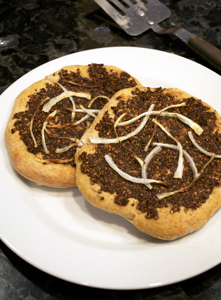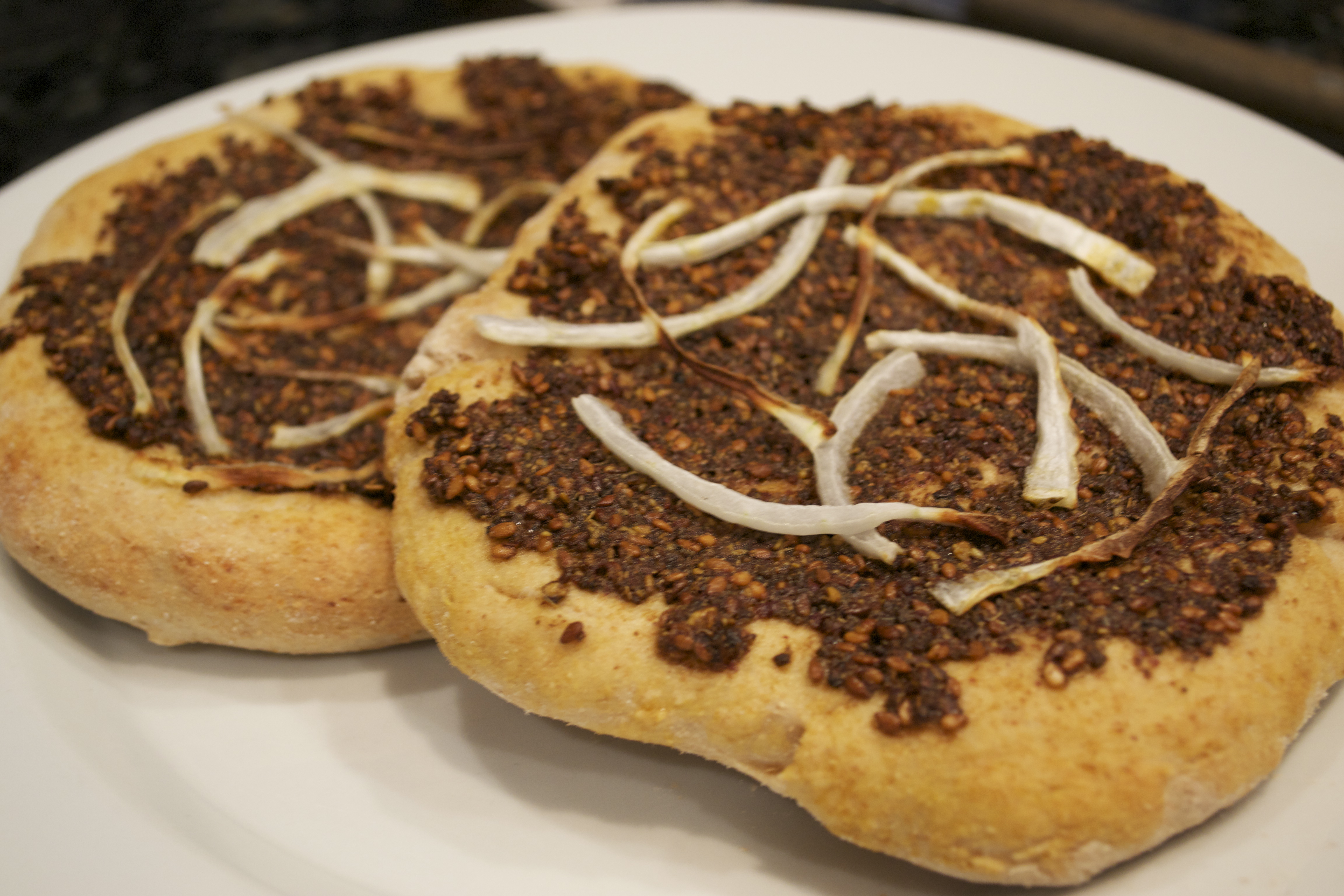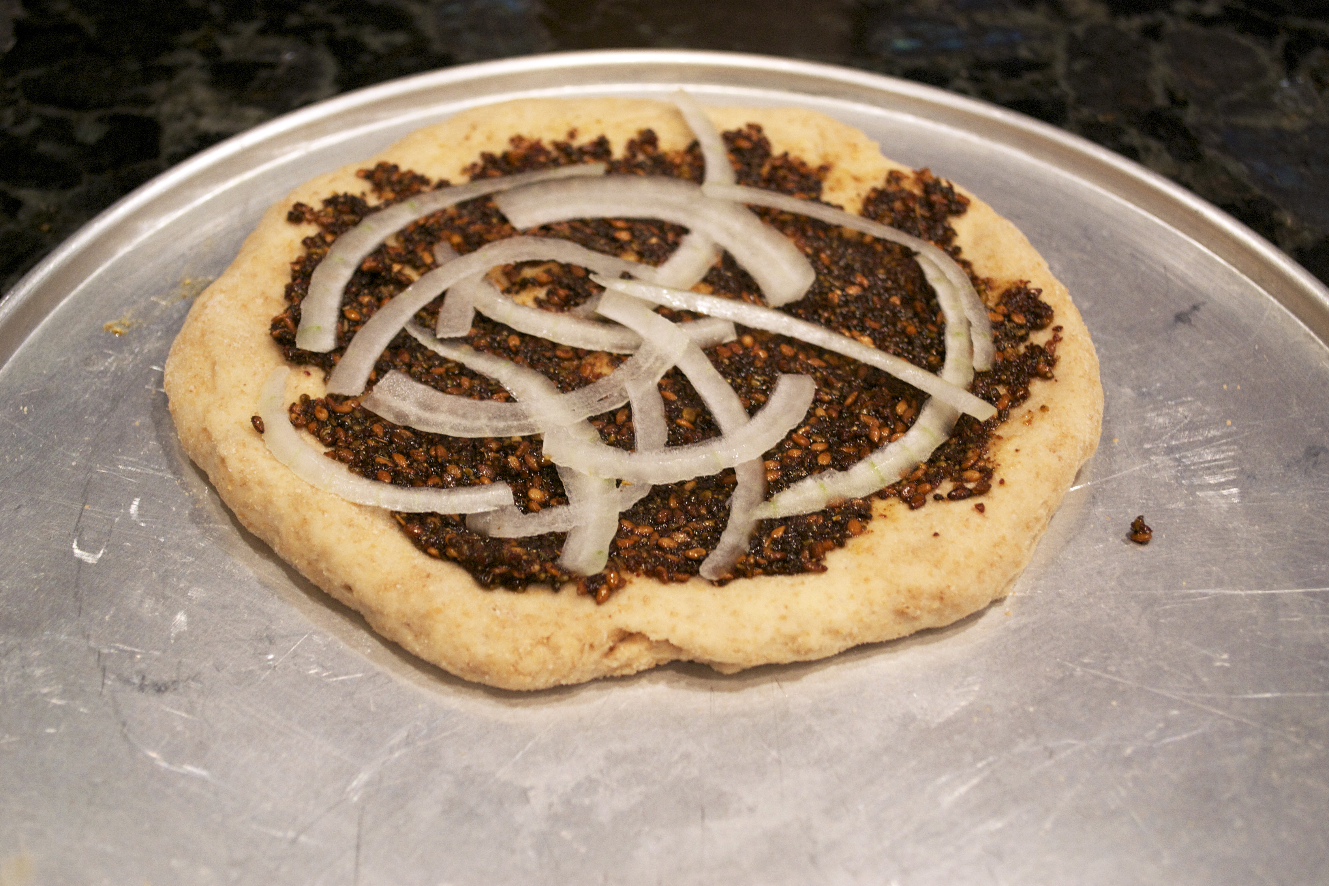 Combine the Zaatar, oil, and black pepper to make a paste. Spread on top of the dough and top with onion slivers. Bake for about 10 to 15 minutes, until the crust turns golden brown and the onions start to brown.