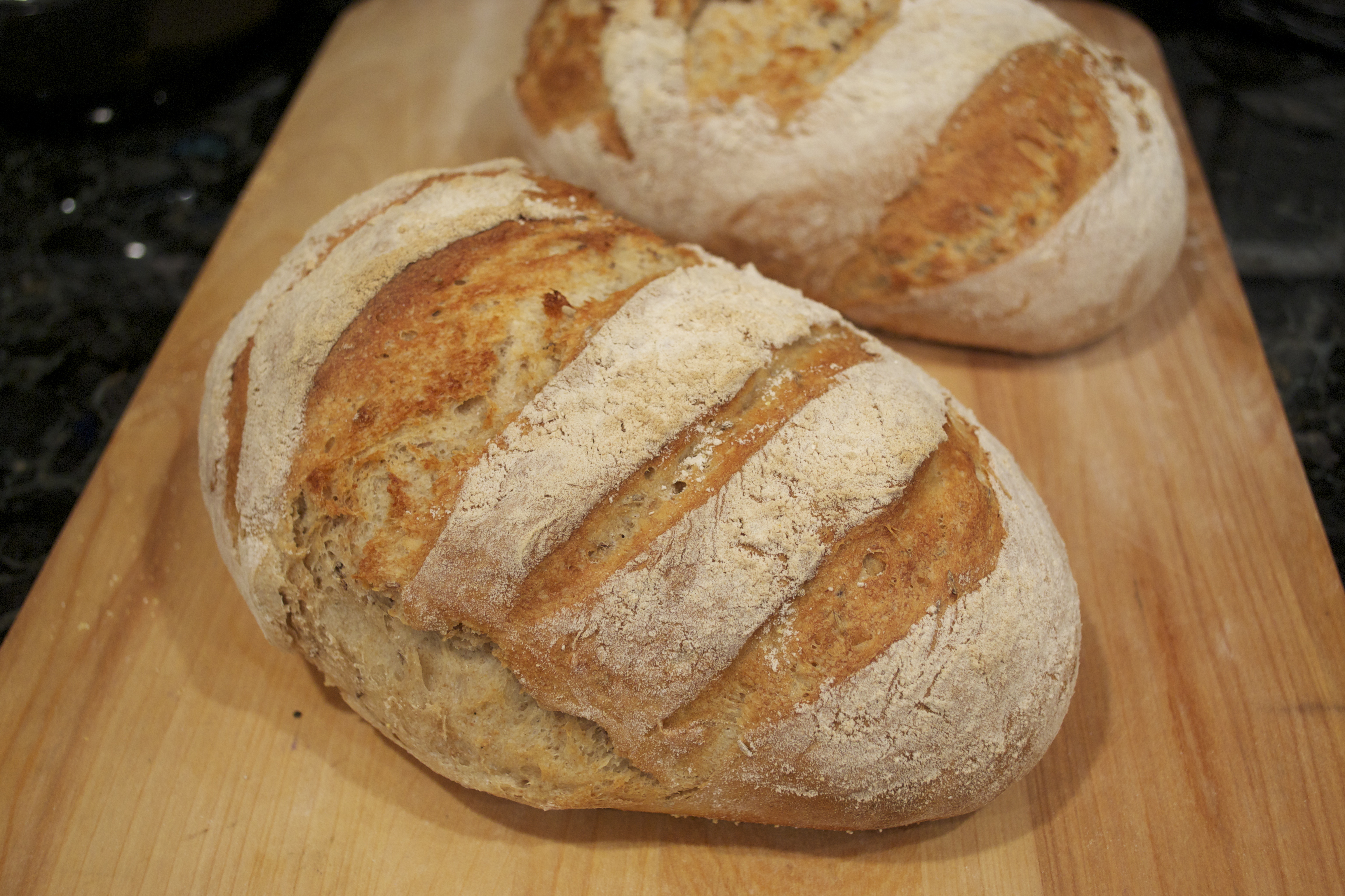 I split the recipe in half. The original recipe is supposed to make four 1lb loaves. I made one loaf with half of the recipe so I guess it was 2lbs. It wasn’t particularly large by any means and it was completely eaten in less than 24 hours. Yeah, it was really freaking good. The caraway seeds give the bread it’s flavor so don’t even thinking about leaving them out. You can also replace the flour top for a cornstarch wash with extra caraway seeds sprinkled on top but I love the look of the floured crust. I can’t even convey how good this bread is.