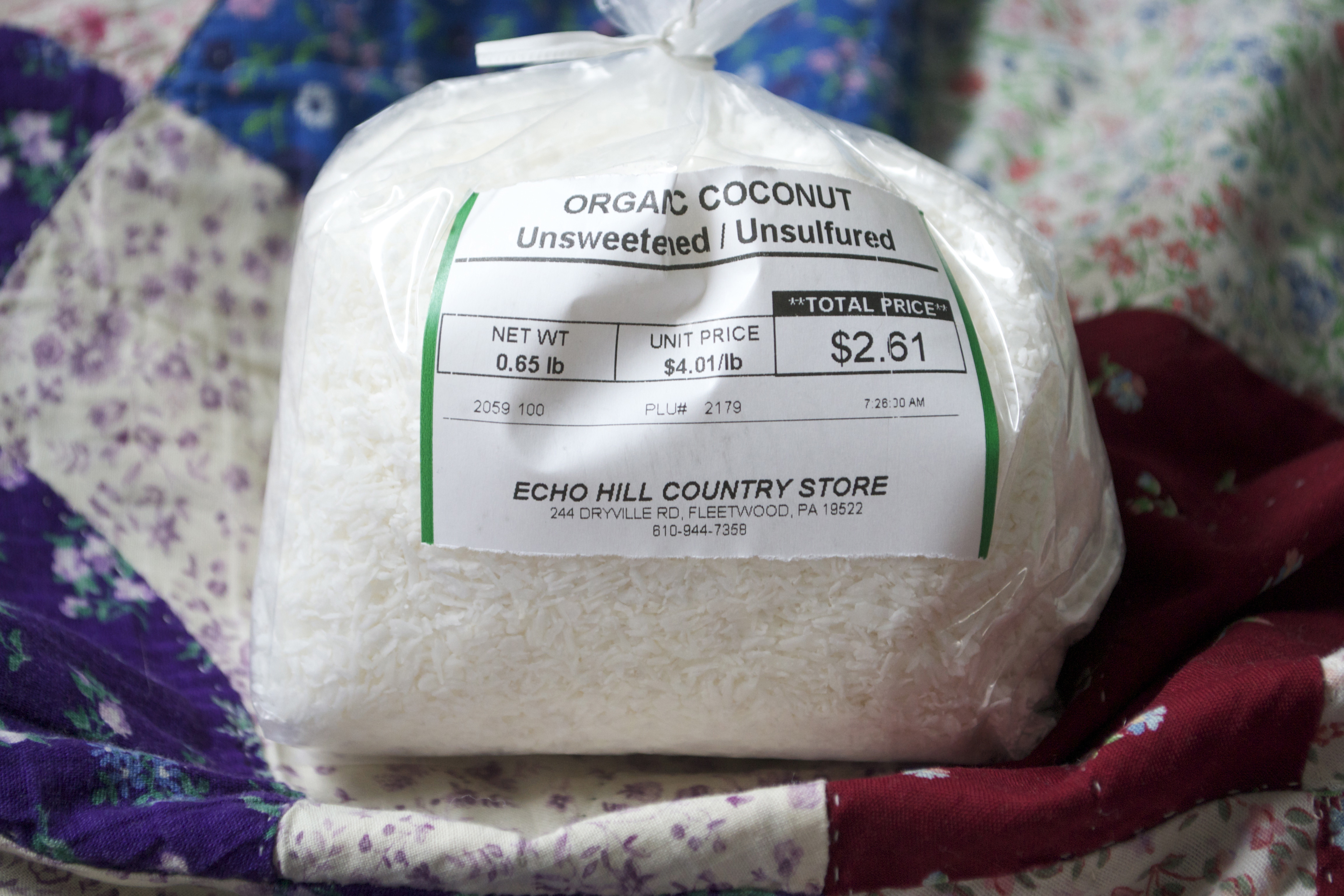 I also used organic extra virgin coconut oil, which can be quite expensive! According to www.live-the-organic-life.com virgin & extra virgin coconut oil are pretty much the same thing, with no industry standard processing. However, virgin coconut oil (VCO) is much different from refined coconut oil (RBD). According to the website, refined coconut oil is of a lower quality, undergoes greater processing, and will clog the pores if used for external use (ie moisturizer). RBD stands for refined, bleached, and deodorized so the oil also loses much of its smell (which I supposed could be handy if you don’t want everything you make to taste like coconut). I think I’ll still choose virgin. Virgin coconut is physically extracted with no chemical processing and the oil remains unrefined in a more natural form. It smells wonderfully delicious.