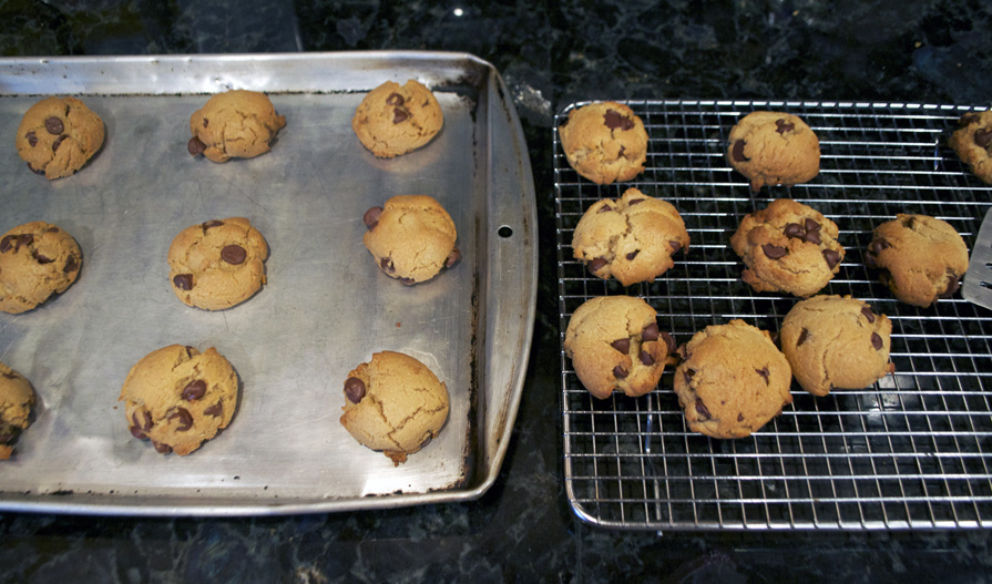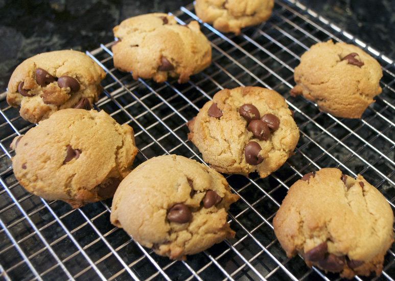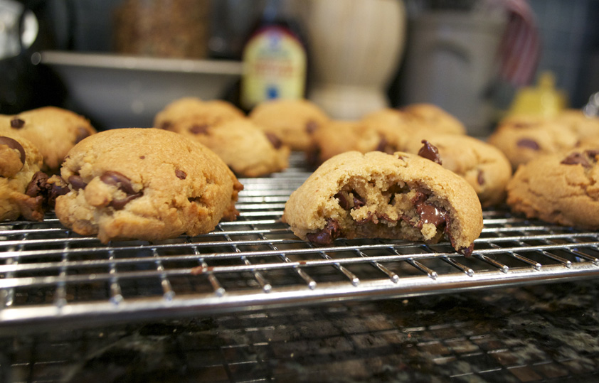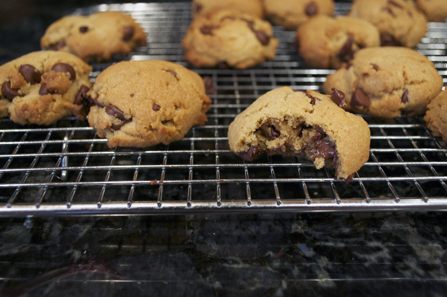Well these aren’t the Tollhouse recipe, but they are damn good. Just as good. Promise. They’re adapted from a recipe out of my mom’s old faithful Better Homes and Gardens New Cook Book. And they have a slight taste of peanut butter that isn’t overwhelming but adds that butteriness that really makes the chocolate pop.