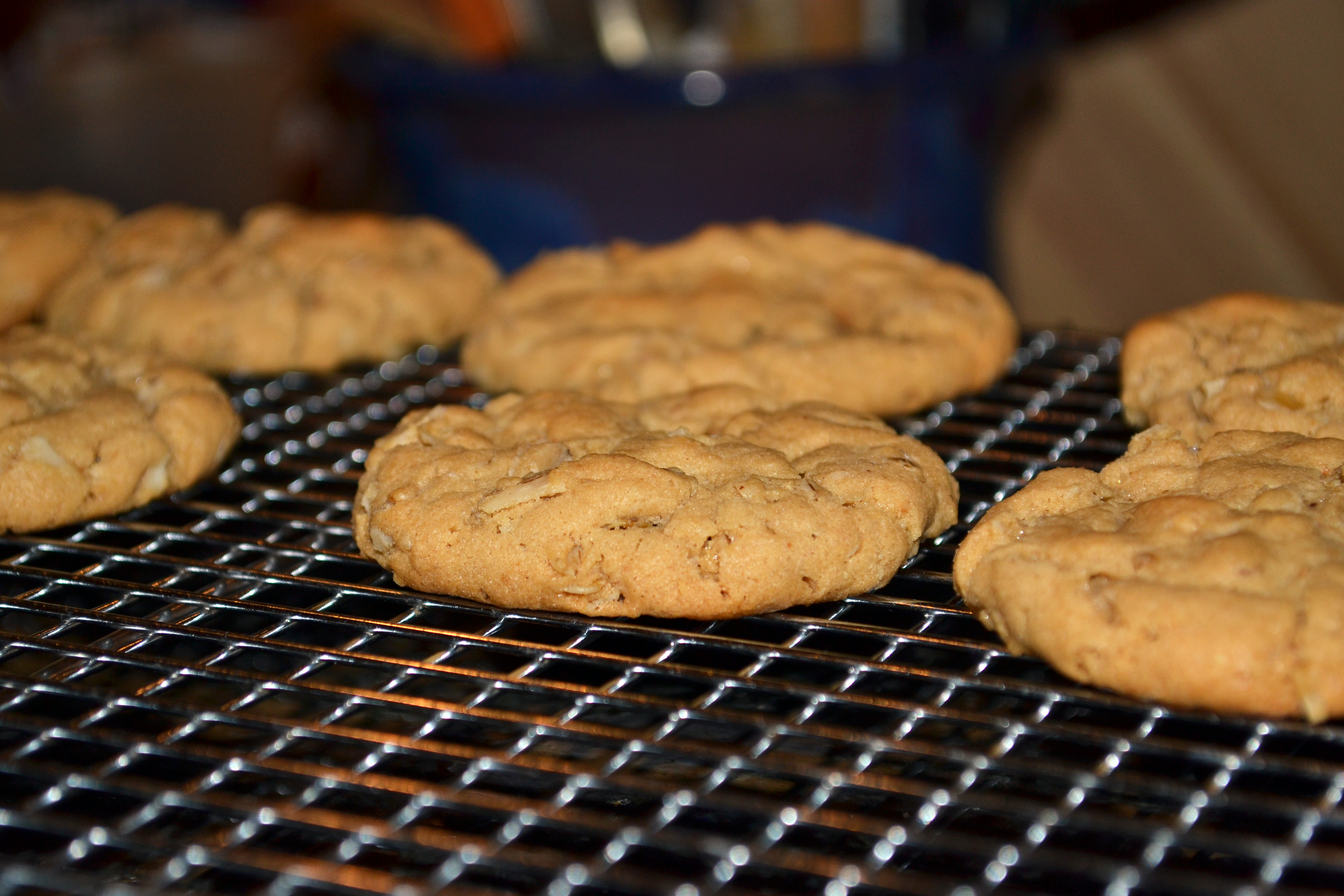 Add flour, oats, baking soda & salt – slowly. Beat until well-mixed & smooth.